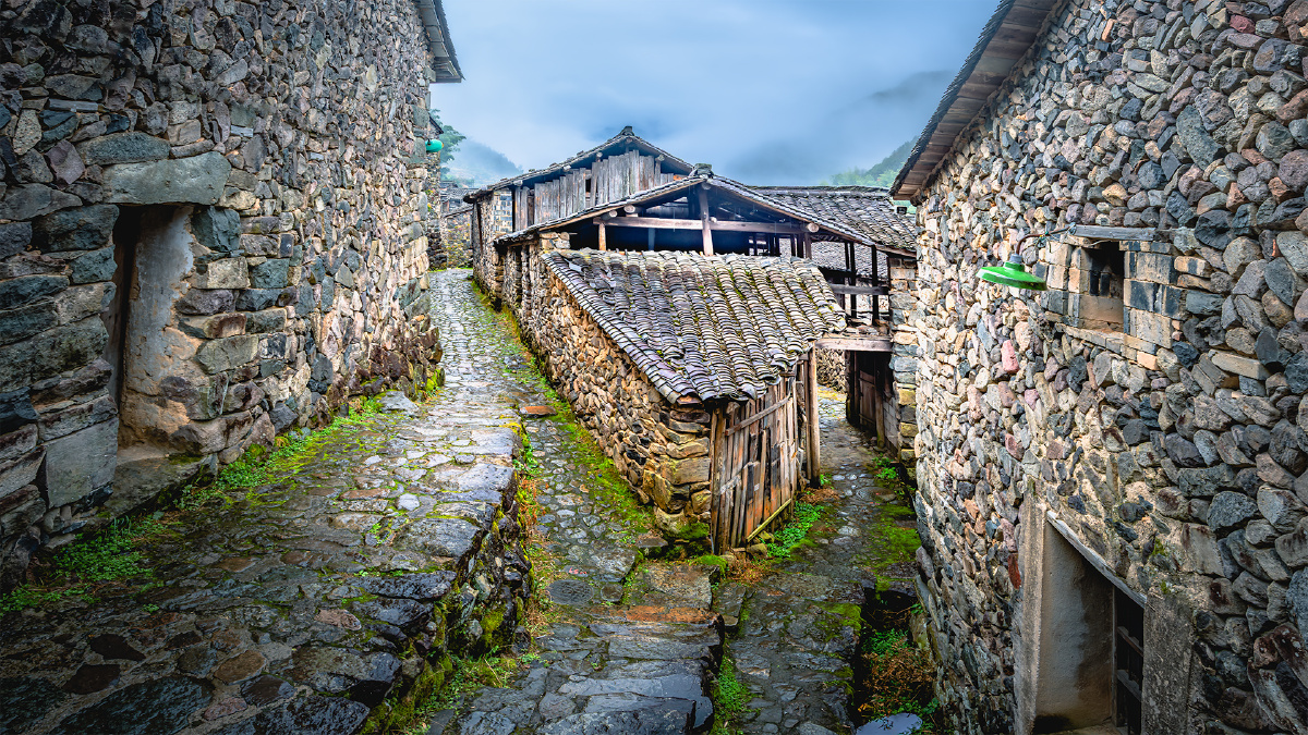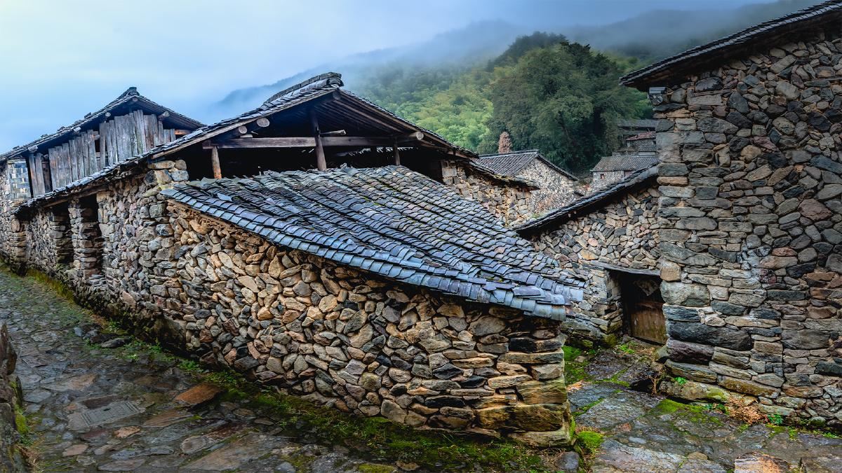 岩下石头村是一座藏在浙江丽水缙云县深山里的古老石头村落,因其清一色的石头建筑和古朴原始的风貌,被誉为“江南石头第一村”。
